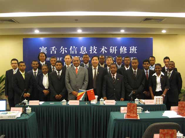 为期三周的“塞舌尔信息技术研修班”在上海亚太地区经济和信息化人才培训中心(以下简称亚太培训中心)精心组织、承办下,在全体工作人员和学员的共同配合、努力下,已经圆满完成各项议程,于2010年10月30日在北京顺利结束,结业典礼10月30日上午在北京东方饭店会议室举行。